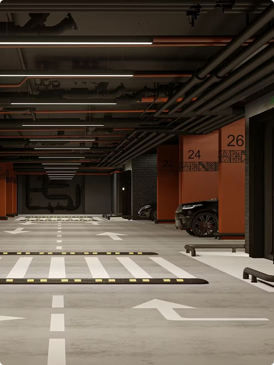 Водночас це не просто паркінг, а укриття, збудоване згідно з вимогами державних будівельних норм України (ДБН), що регламентують облаштування захисних споруд. Такий підхід створює додаткове відчуття безпеки та впевненості – укриття завжди поруч і доступне за лічені хвилини.