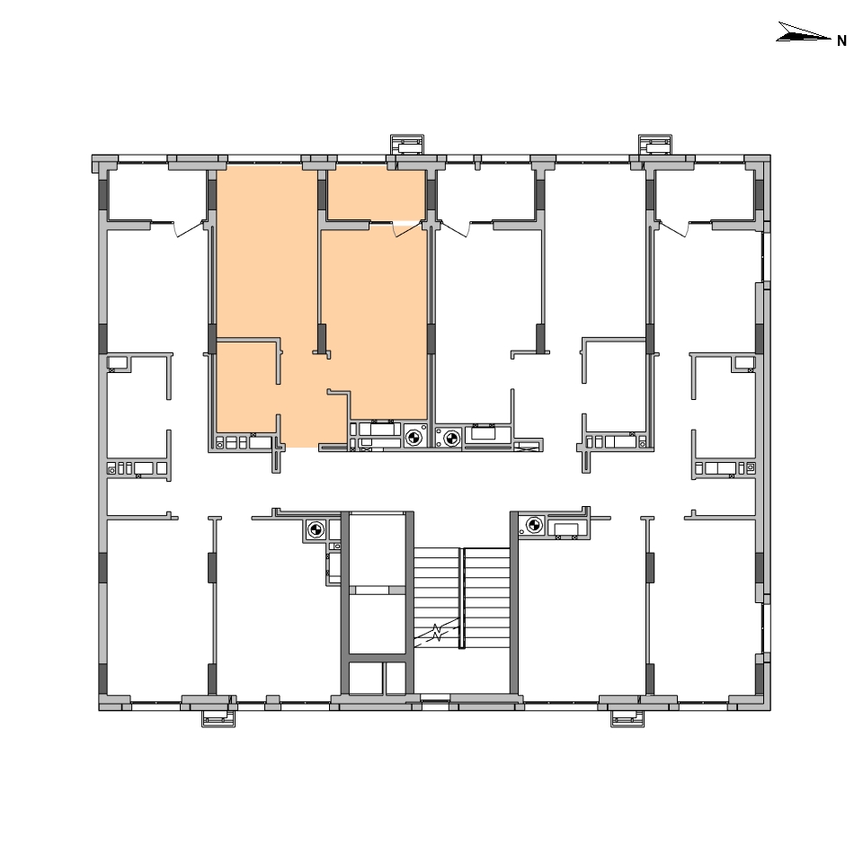 Layout of 1-room flats: №12, 51.24 m²