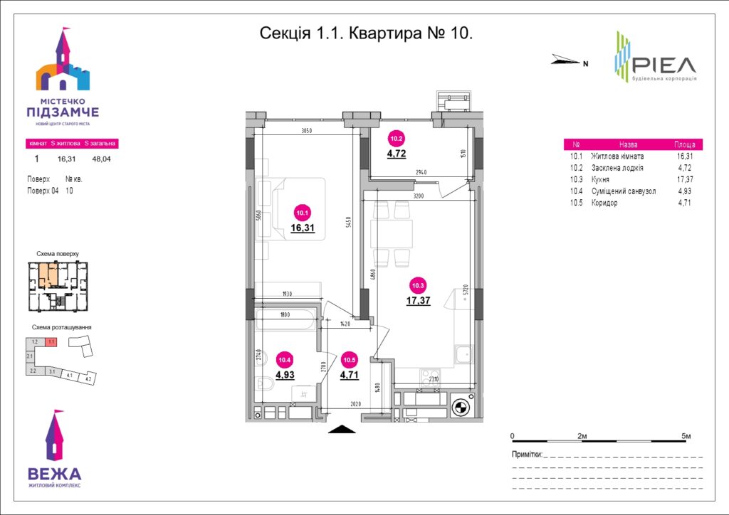 Планування 1-кімнатної квартири: №12, 51.24 м²