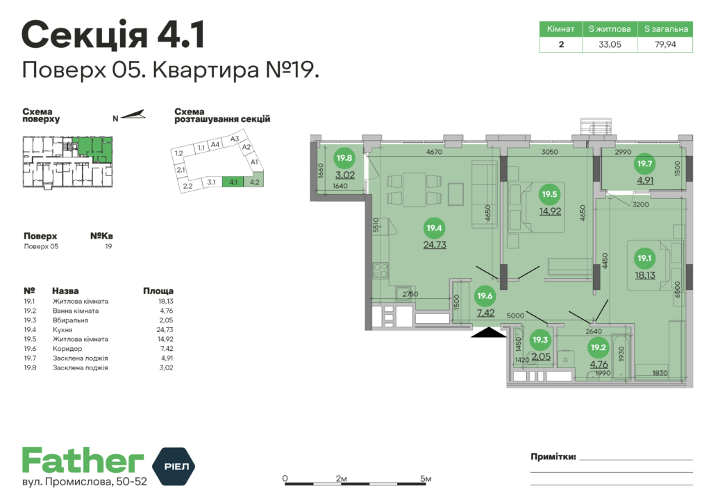 Планування 2-кімнатної квартири: №19, 79.94 м²