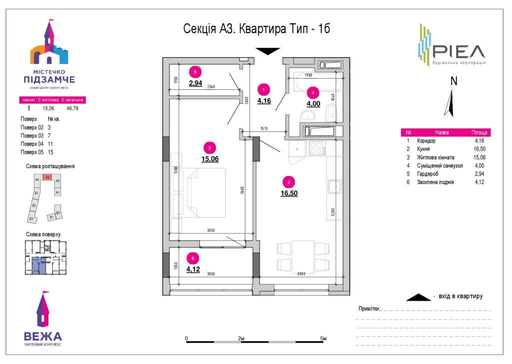 Планування 1-кімнатної квартири: №3, 47.23 м²
