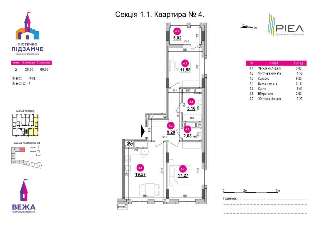 Планування 1-кімнатної квартири: №4, 48.42 м²