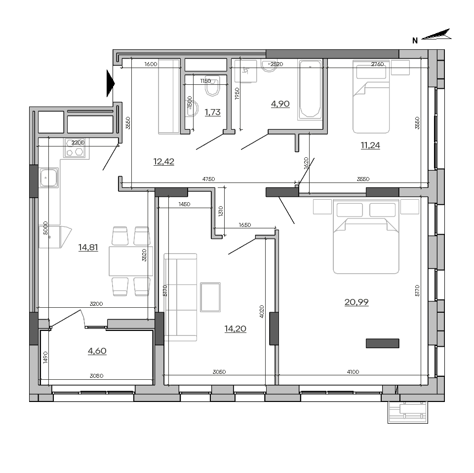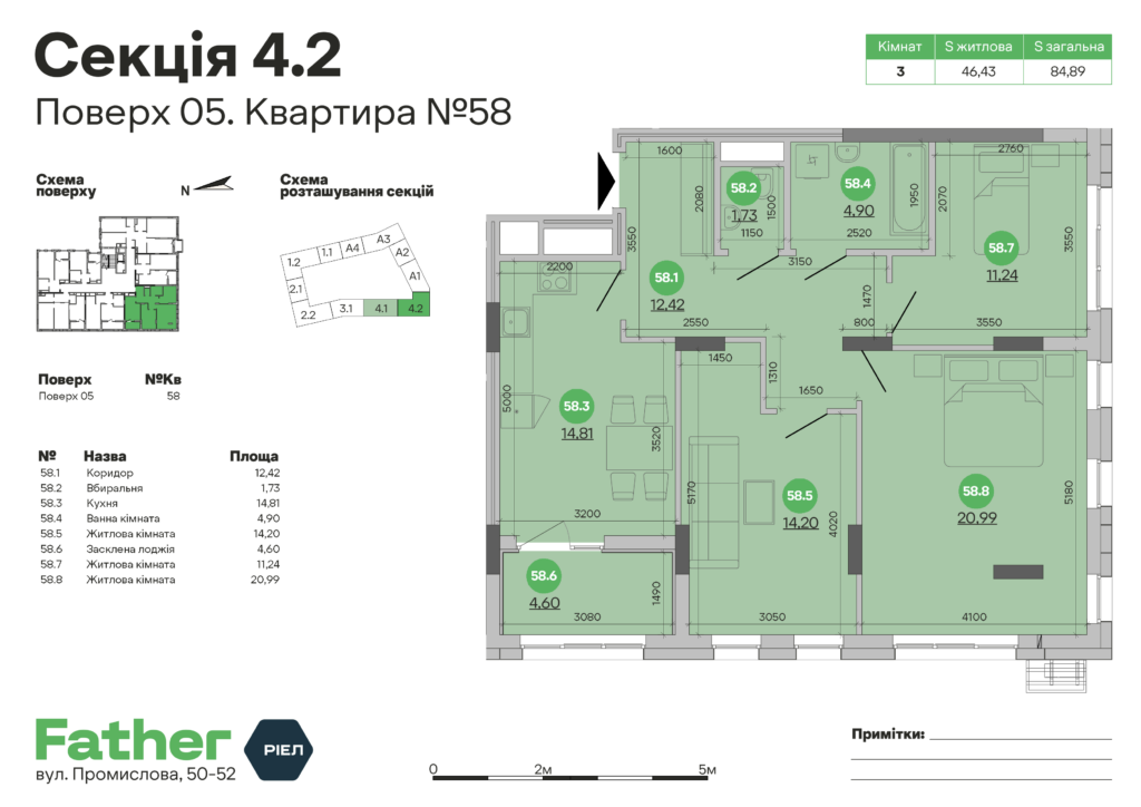 Загальна площа 84.89 m²