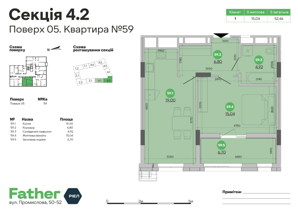 Загальна площа 52.46 m²