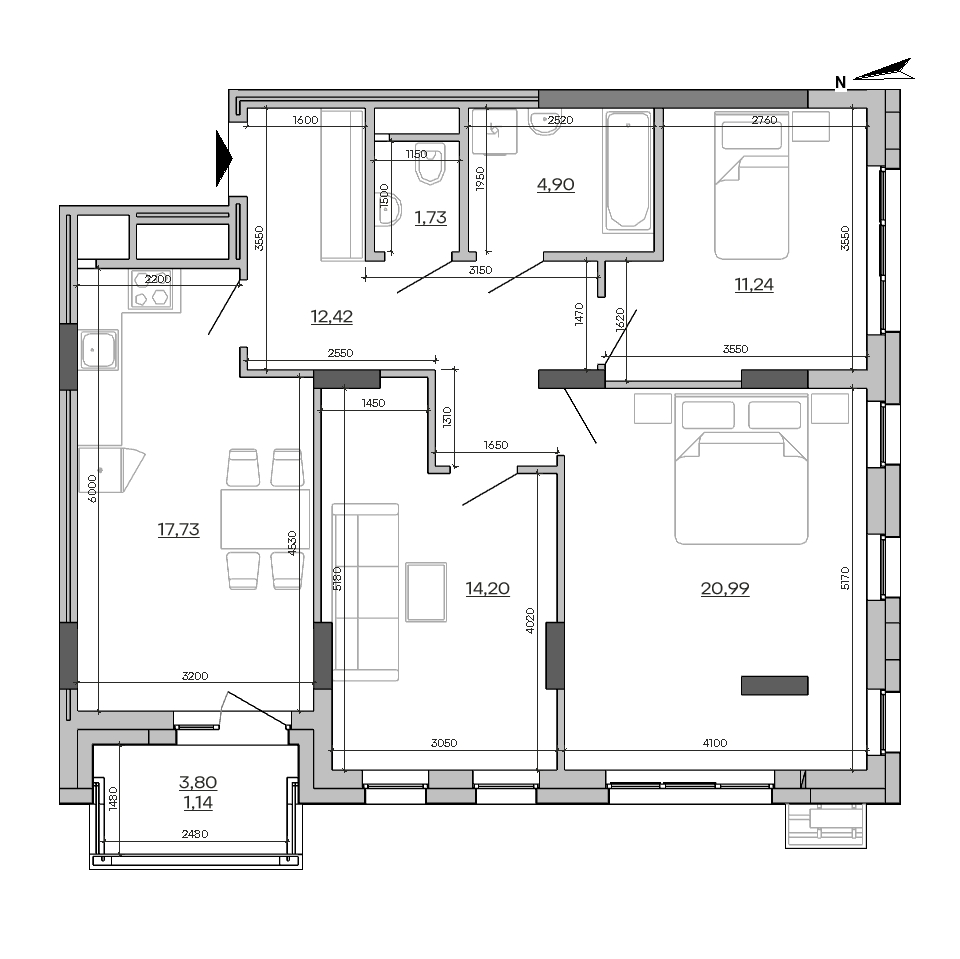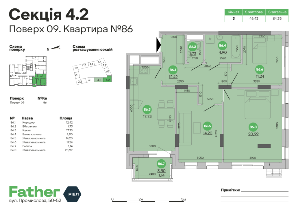 Планування 3-кімнатної квартири: №86, 84.35 м²